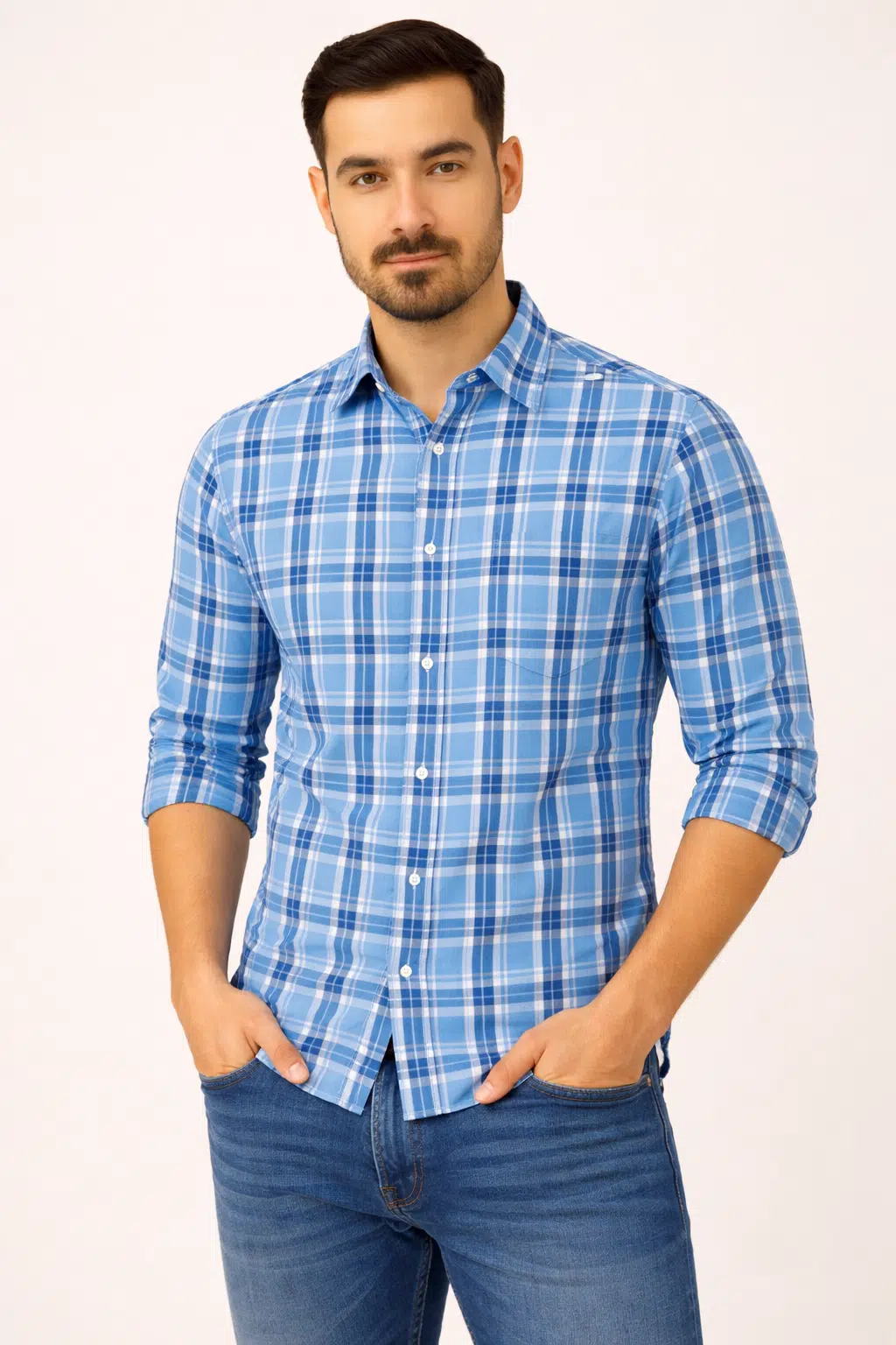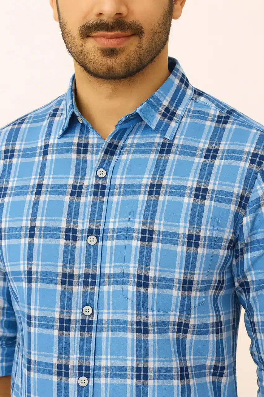To keep your “Sky Check: Men’s Sky Blue Checks Full Sleeves Pure Cotton Shirt” in top condition, follow these care instructions: