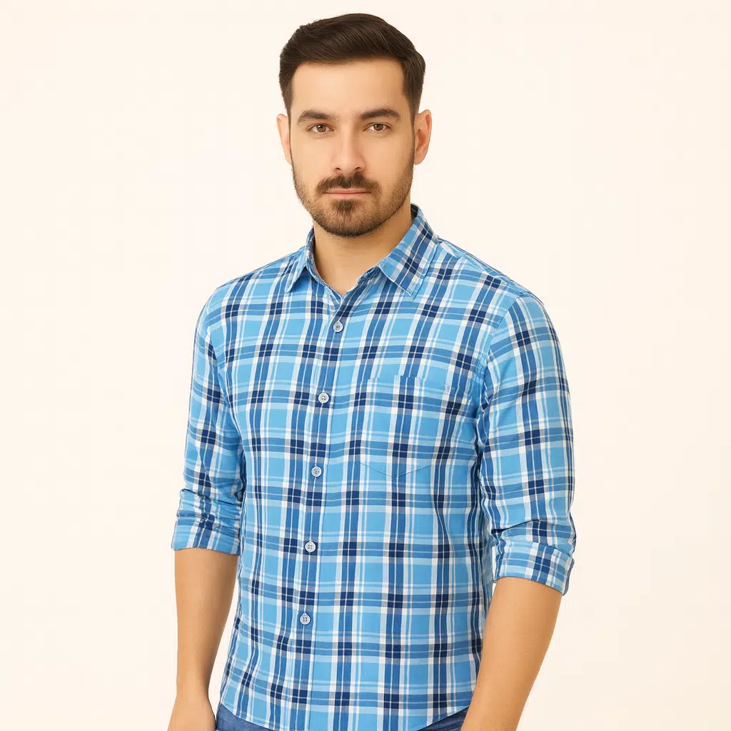 Introducing “Sky Check” by Fab Signatures – a perfect blend of style and comfort for the modern man. Crafted from pure cotton, this men’s shirt features a charming sky blue checks pattern, adding a touch of sophistication to your ensemble. With full sleeves providing coverage and versatility, this shirt is suitable for various occasions, from casual outings to formal gatherings. The premium cotton fabric ensures breath ability and durability, keeping you comfortable throughout the day. Elevate your wardrobe with the timeless elegance of the Sky Check shirt, designed to enhance your style effortlessly.