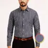 Introducing “Monochrome Stripe” by Fab Signatures – where sophistication meets simplicity. Crafted from pure cotton in a pristine white hue, this men’s shirt features timeless blue and black stripes for a touch of classic elegance. With its premium quality fabric and impeccable tailoring, the Monochrome Stripe shirt offers both comfort and style. Whether you’re dressing for the office or a casual outing, this versatile shirt is sure to elevate your look. Make a statement of refined sophistication with the Monochrome Stripe shirt from Fab Signatures.